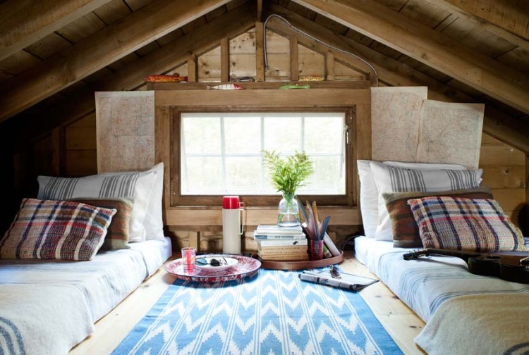Oh my... I'm smitten with this next choice. The simplicity and minimalism in this space is incredible. I certainly picture this being in a second/vacation home at the lake or the beach. I specifically like the texture from the plaid pillows, the texture from the rug and lastly, the texture from the exposed wood. Amazing!