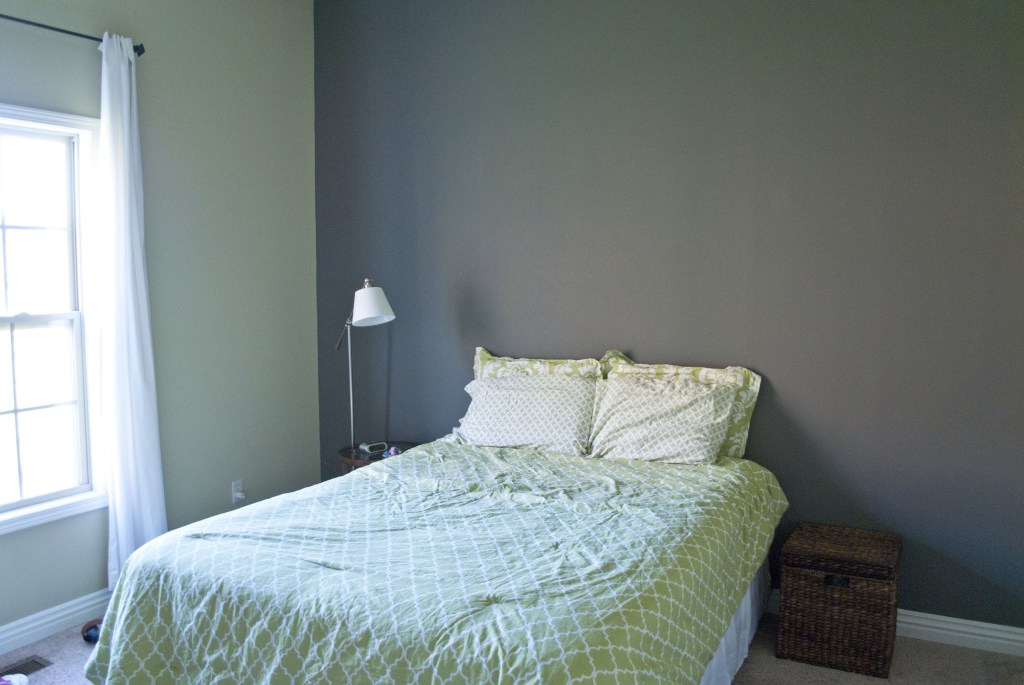 Here is a look at what the guest room looked like prior to the new headboard. The ten foot walls look REALLY bare. Yikes!