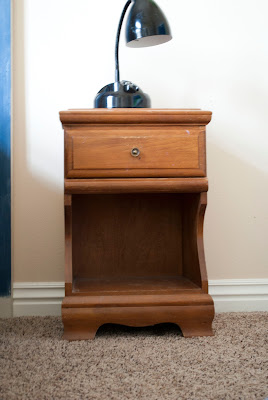 He has the perfect little wood night stand in his room. It has a little drawer for his treasures, and a shelf area on the bottom. I think it's charming for a kids room.