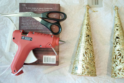 I decided to use these tree ornaments for my base because they have a built-in gold tree topper. You will see why this makes sense, keep reading.