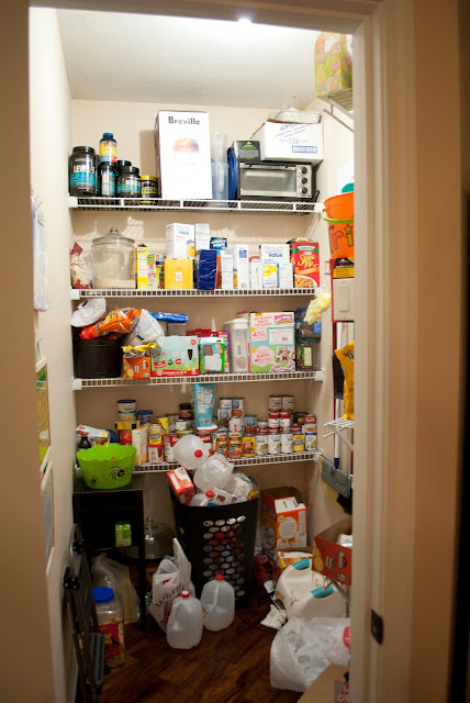 See what I mean? STUFF EVERYWHERE. Random things that certainly don't belong in a pantry. Don't ask me how, but we even had air-soft ammo in there??? I know.