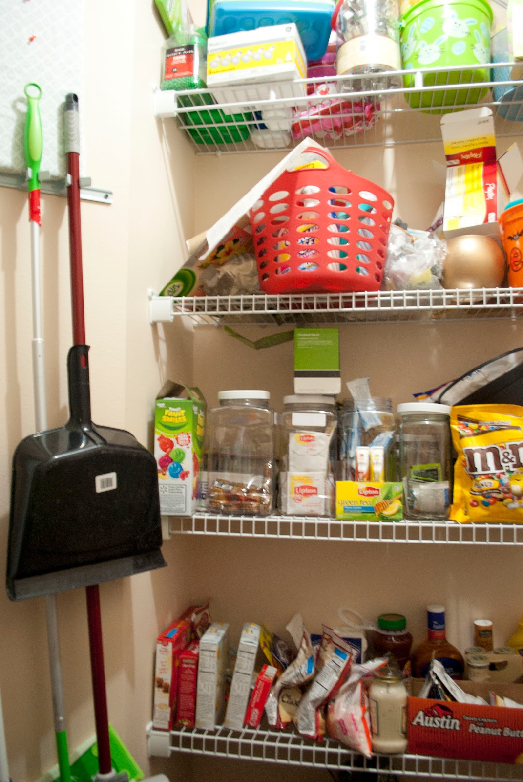 We keep the food items that the whole family accesses on a daily basis to one side of the pantry. This includes snacks and breakfast items. I have a shelf reserved for "new items" which are snacks, cereal, chips, etc that have not been opened yet. The goal is to get the family to eat what we already have before opening a new item.