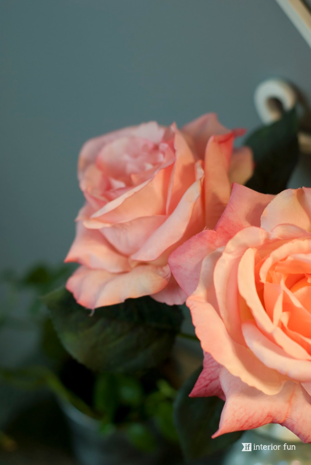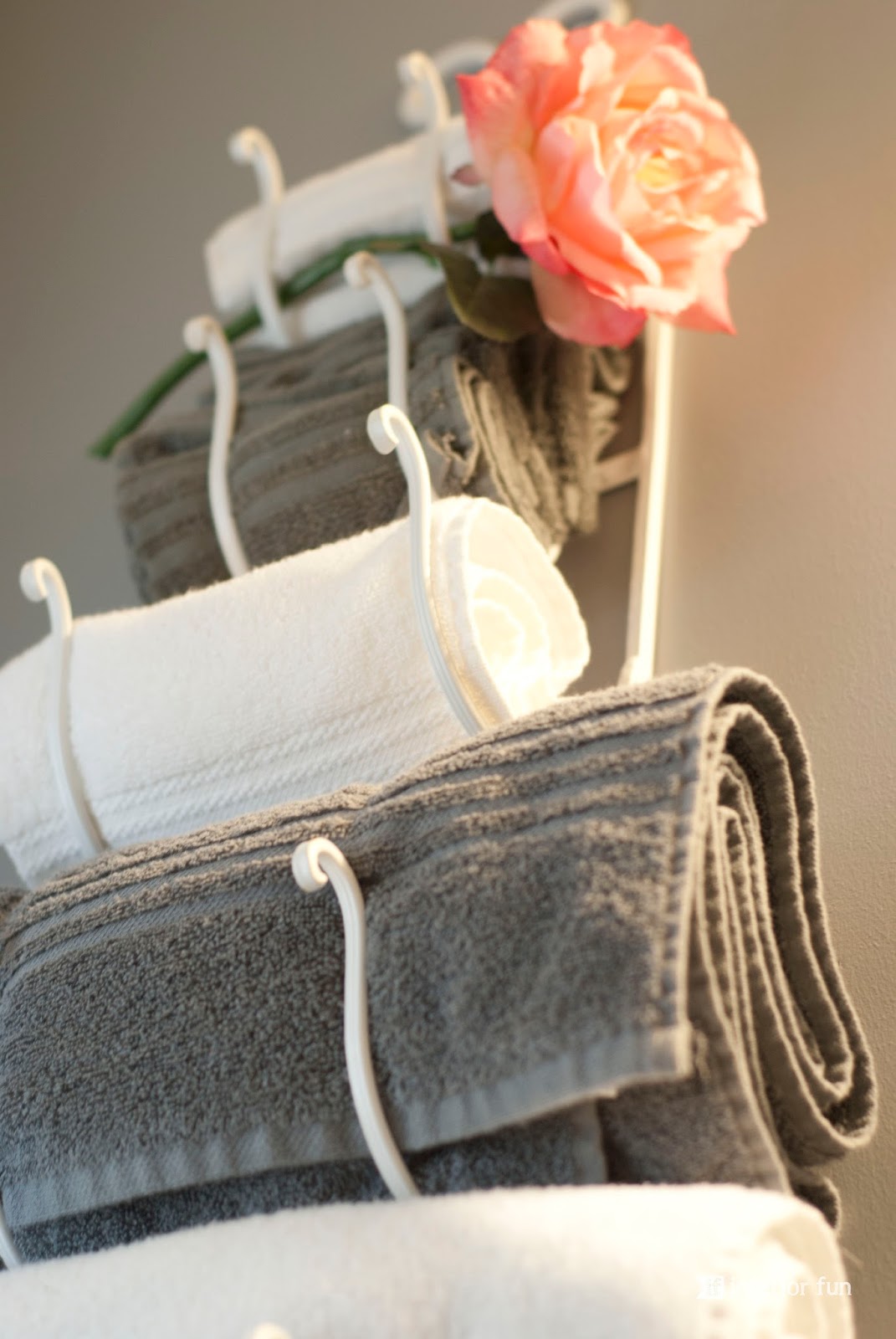 How about that shower curtain? I'm particularly fond of the textural element at the top! Of course there is the girly touch with the pretty pink roses. How real do those faux flowers look!? I can never seem find faux flowers that look that authentic.