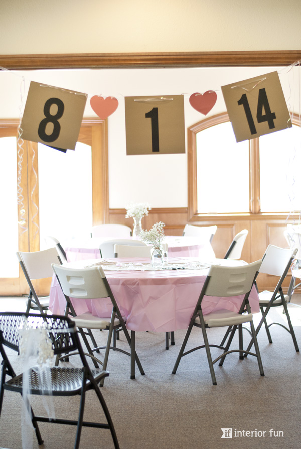 I also used the Silhouette to cut out hearts & labels for the food table. These were made out of the left over scraps from the banner. I figured I might as well use up all of the paper.